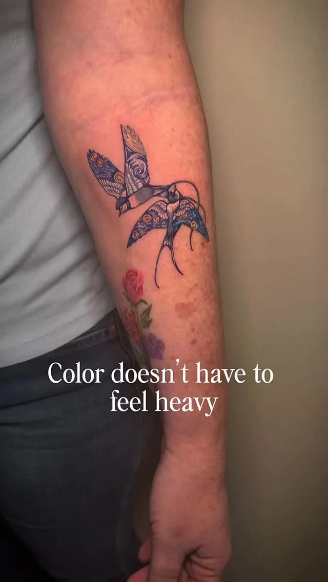 I specialize in soft, detailed tattoos, think fine line, black and grey, romantic color, organic flow, and feminine energy.